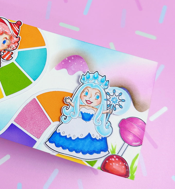 Includes the Die Set Seen in the product Image Only. Large size die this large game board style die works for any size card because you can angle it and adjust it as you see fit. Designed to work with our “ sweet land “ stamp set ( pictured in the sample) but truly can work for other themes.