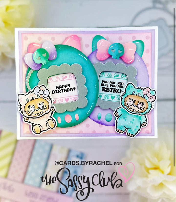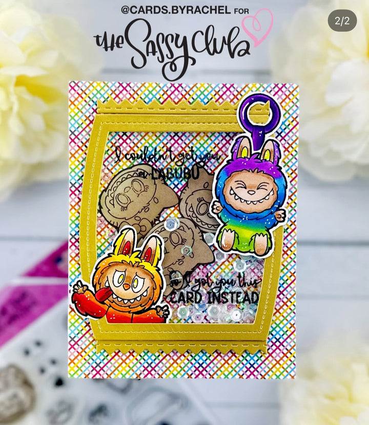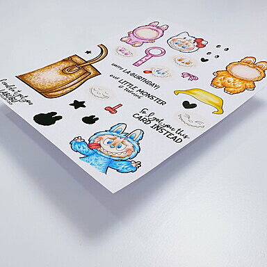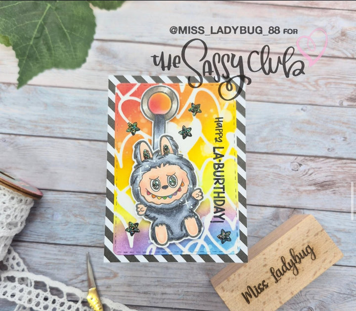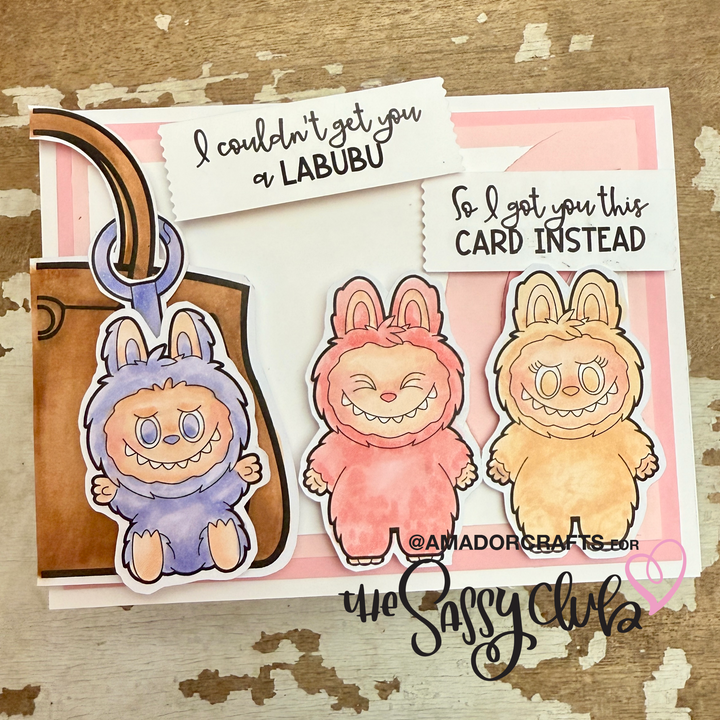 this stamp set is limited edition in nature and will only be around for limited time. 6x8 Stamp Set Words on Set: Happy La-Burthday, Our Little Monster is turning, I couldn't get you a La Bububu so I got you this card insteadRead more