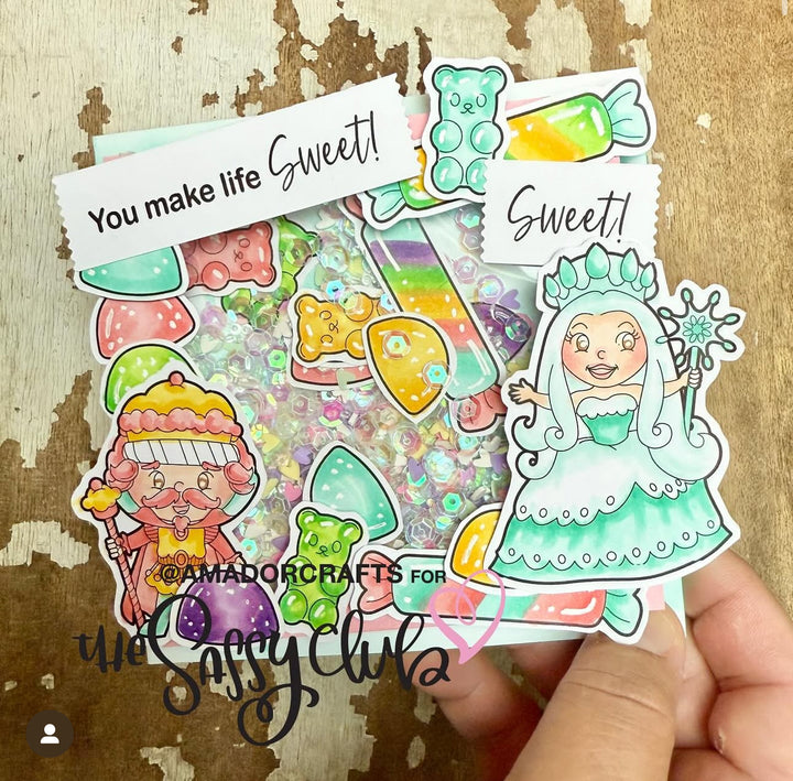 6x8 Stamp Set sample card is paired with our candy board die. Words on this set: Your my sweet heart your the kind of my castle You make life sweet Read more